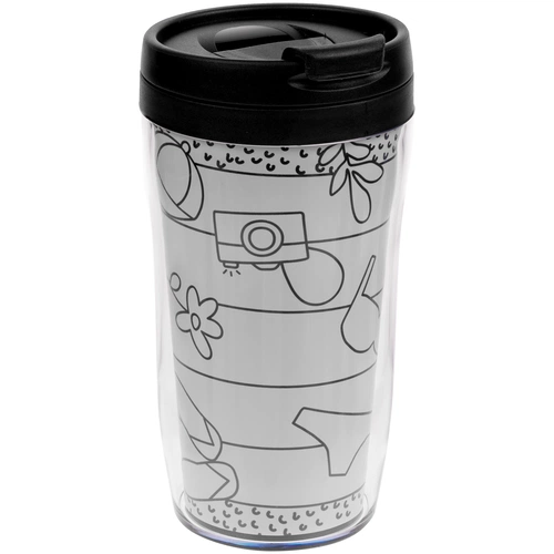 Материал: термостакан - пластик; мелки - воск, картон; раскраски - бумага